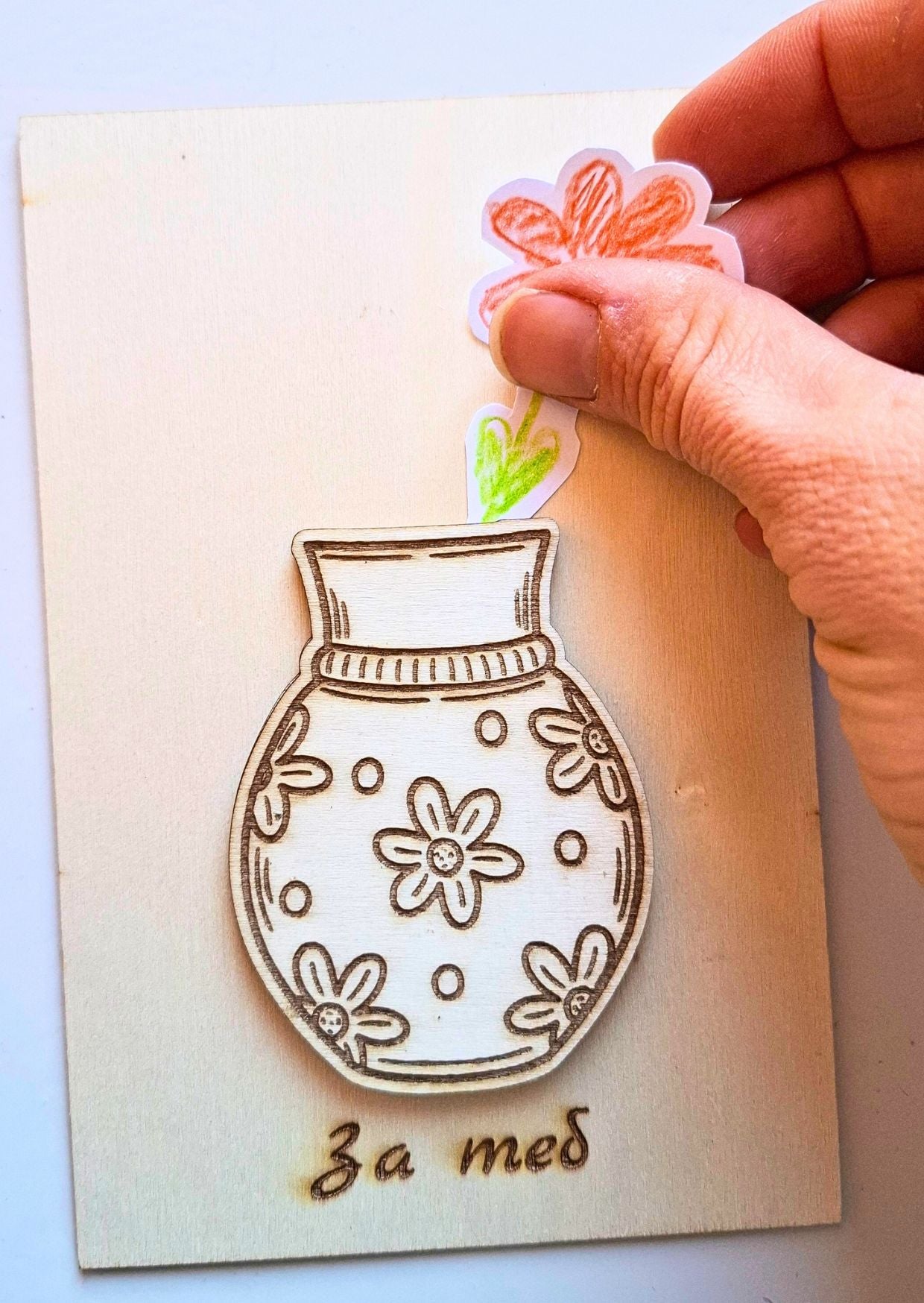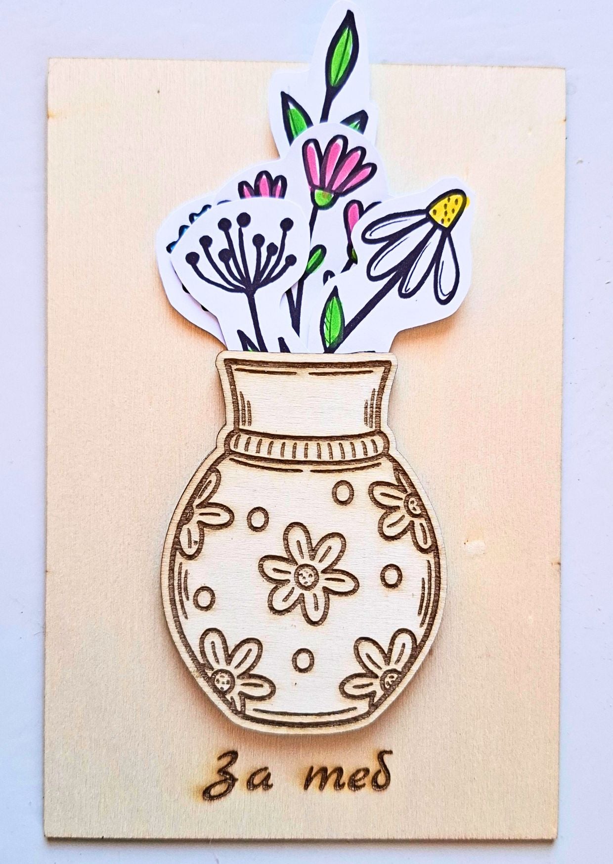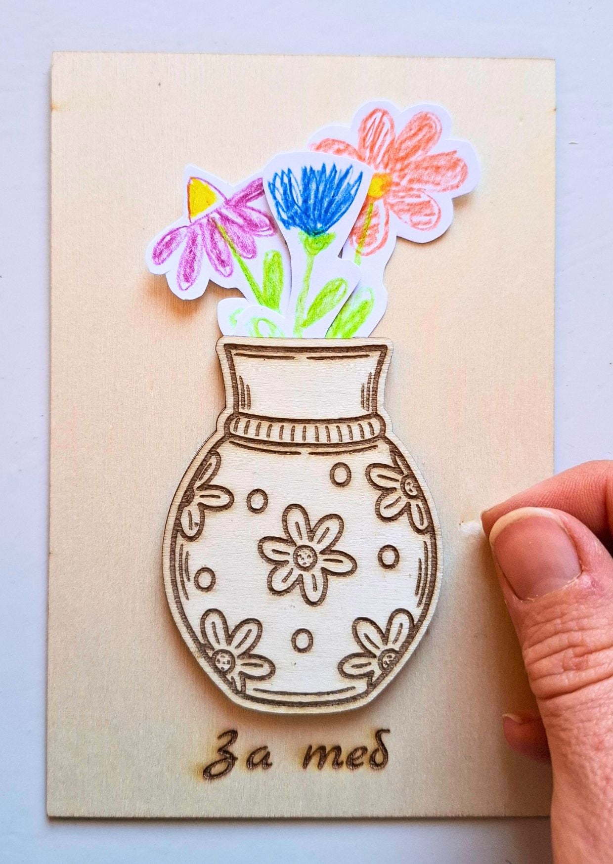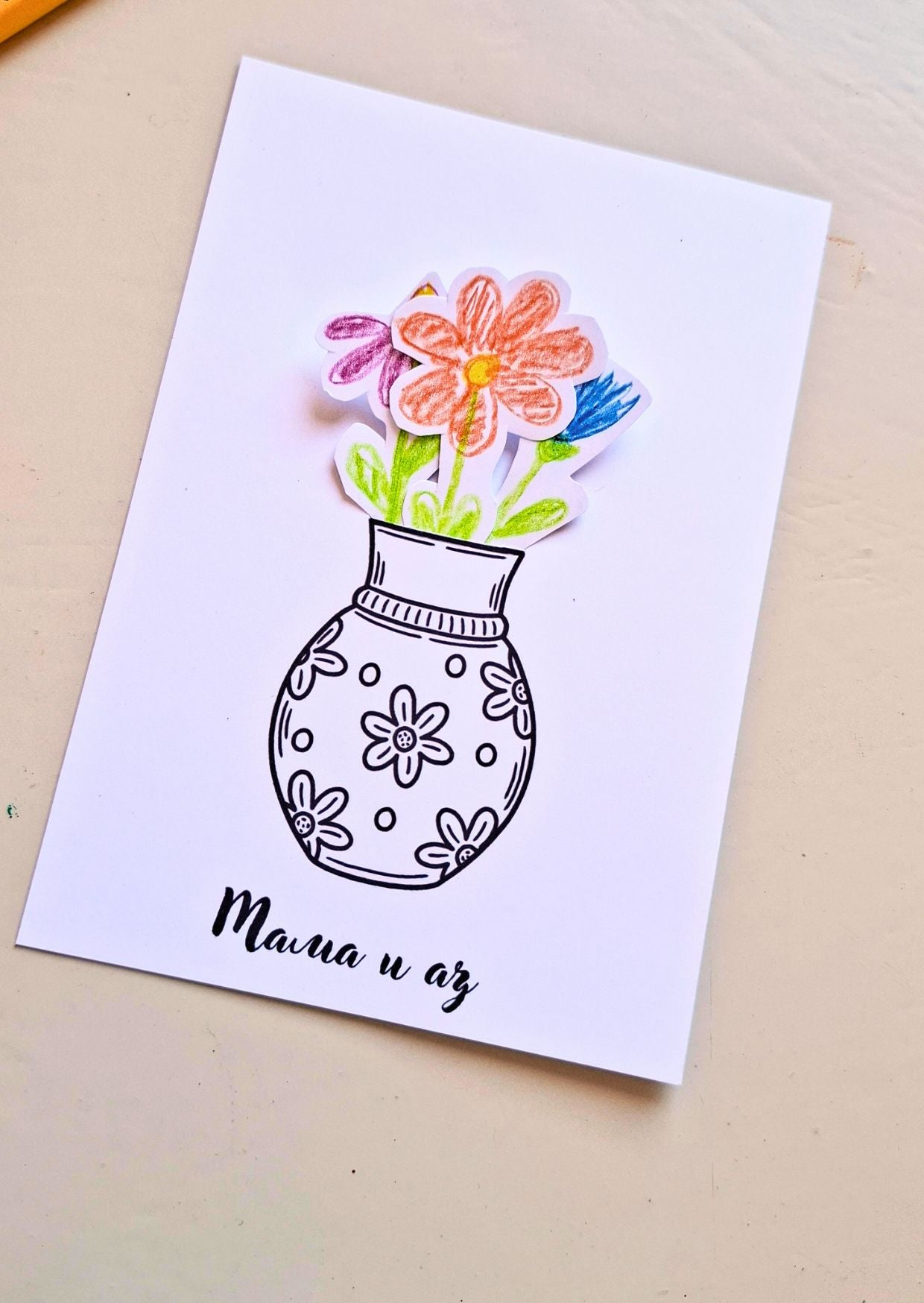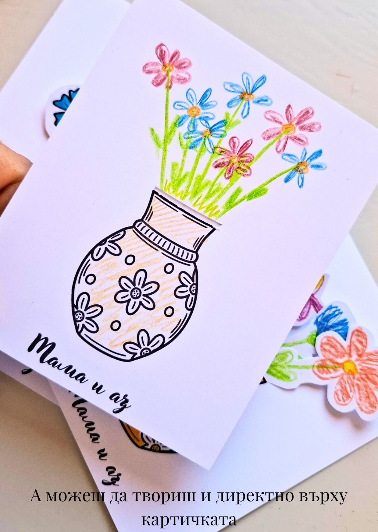 Това е творческа картичка, която се превръща в малък арт проект – за деца и възрастни, за подаряване или за споделен момент у дома.
