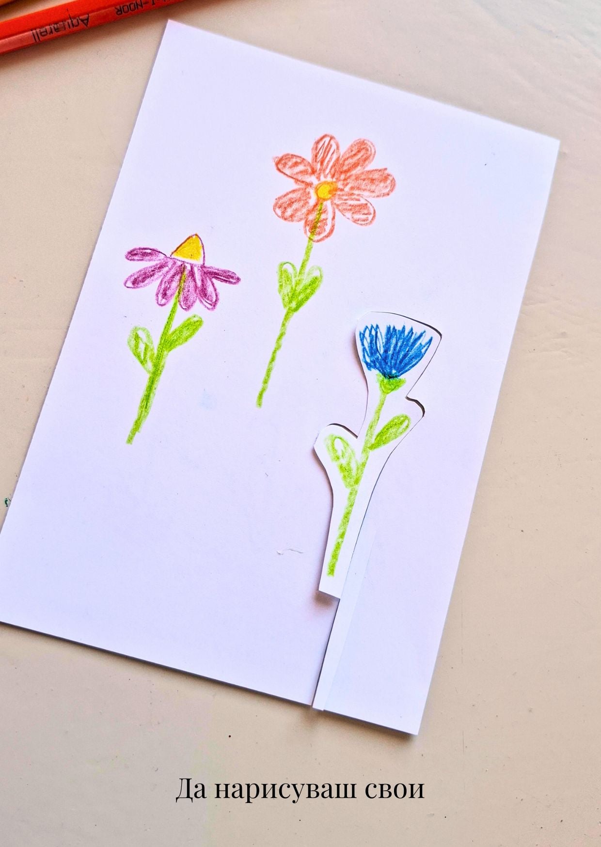 ✏️ Рисуване на собствени цветя върху лист и изрязване